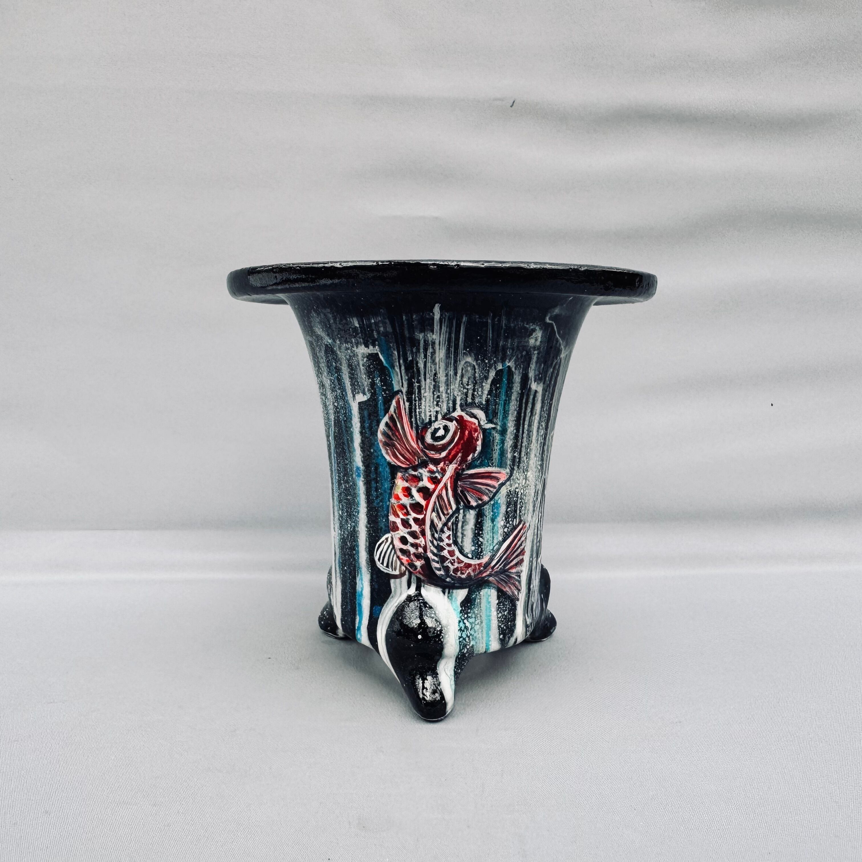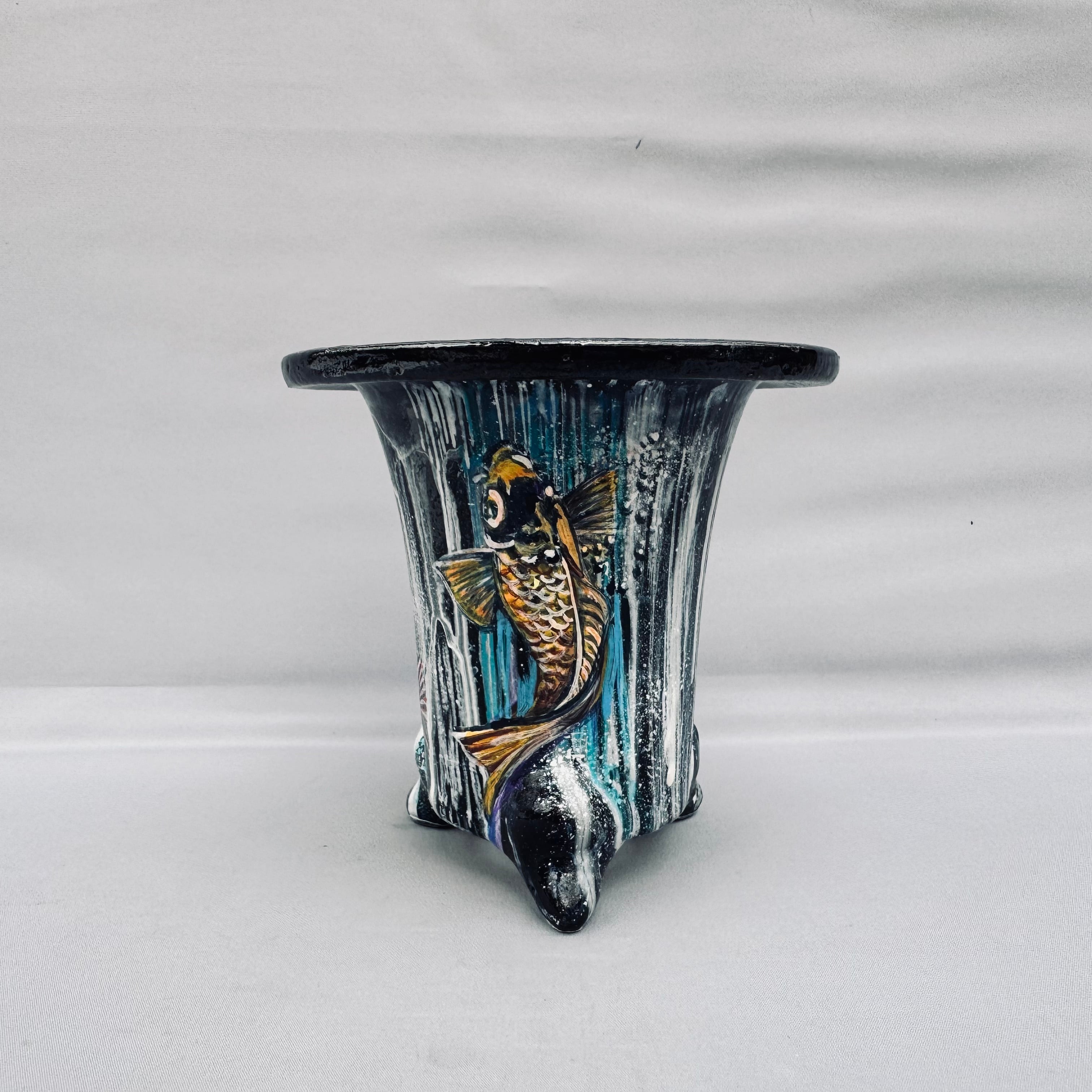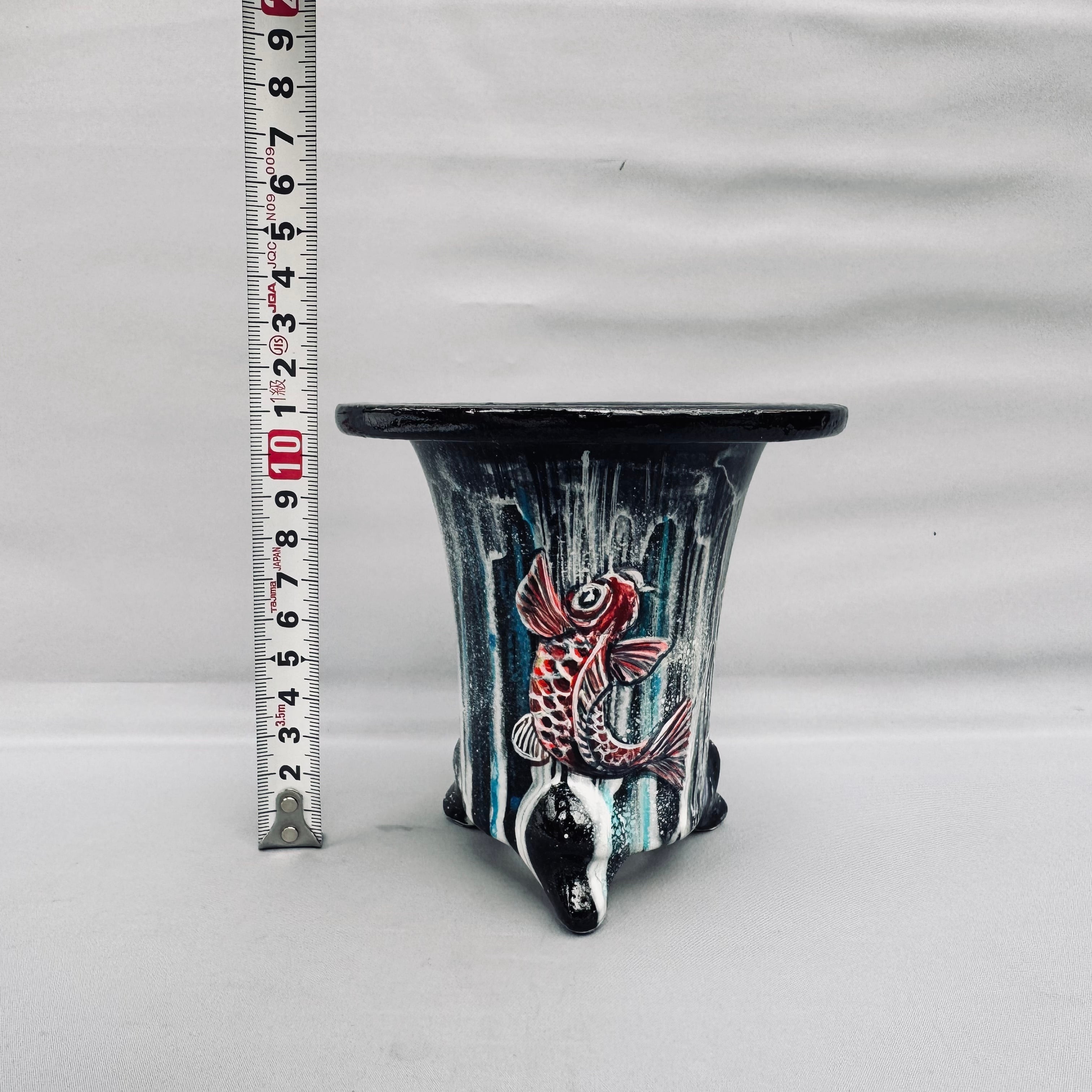 鯉の滝登りが描かれた、力強い鉢です。