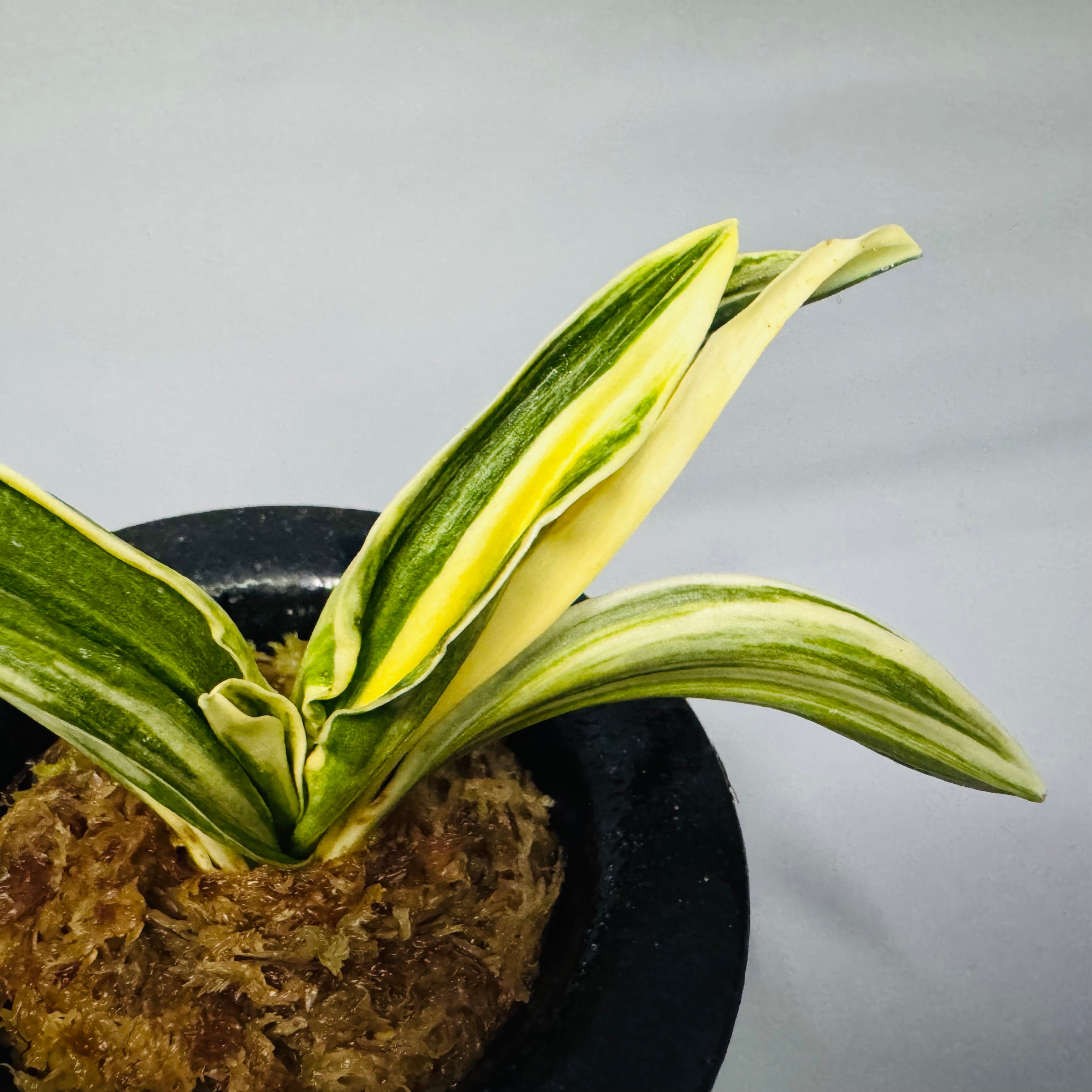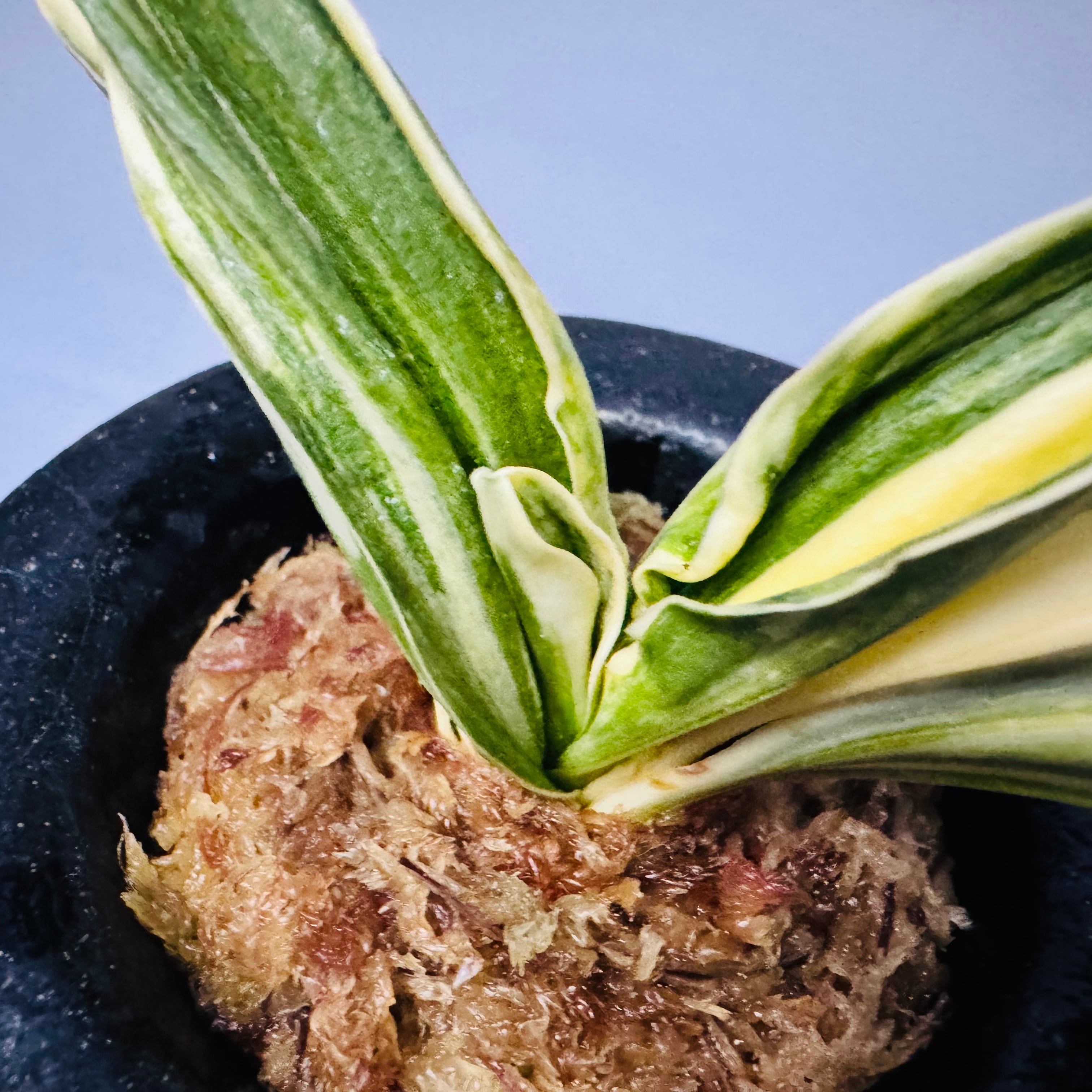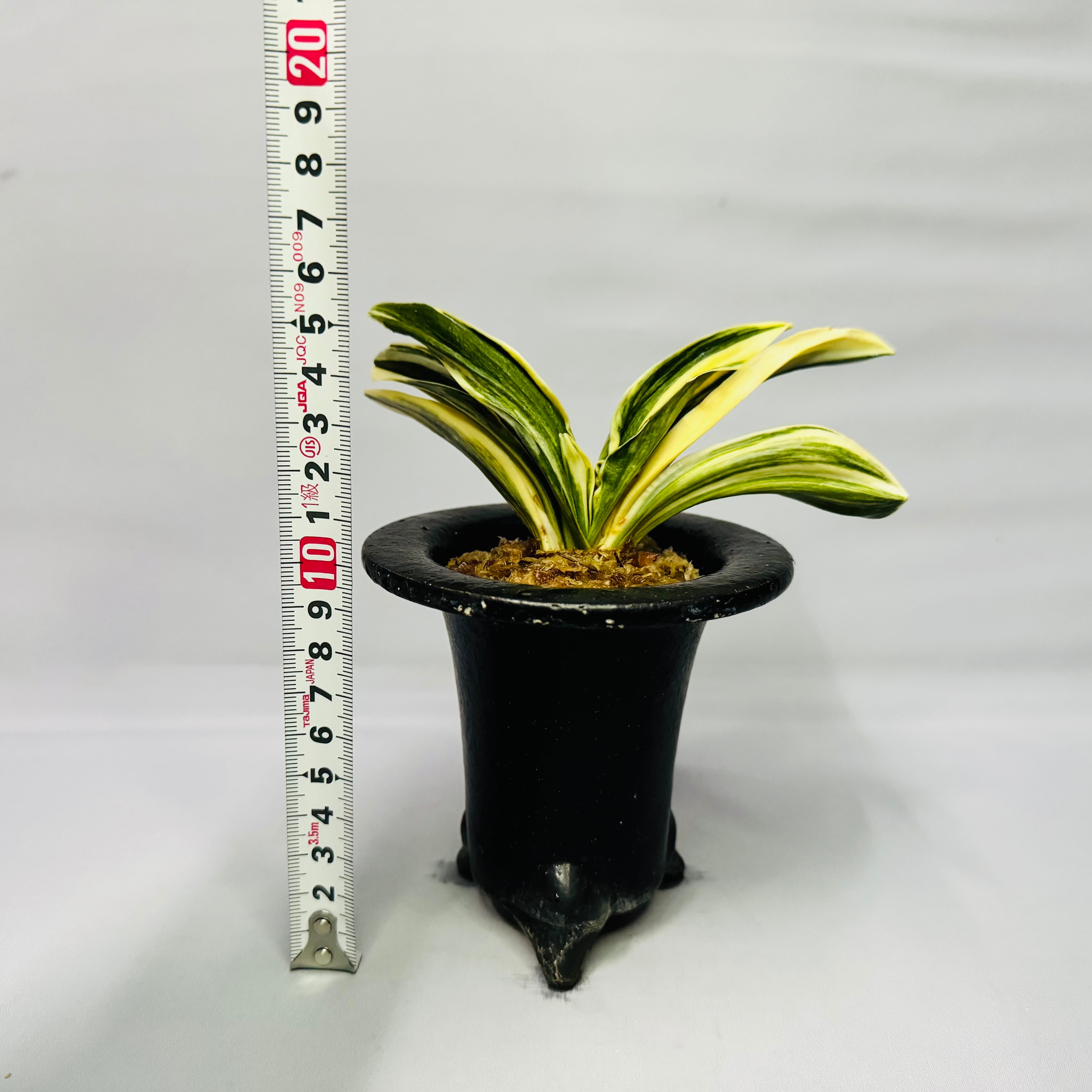 羅紗実生(らしゃみしょう) 6枚の上木 縞綺麗。 実生なのでこれからが楽しみな万年青。 葉芸:熨斗